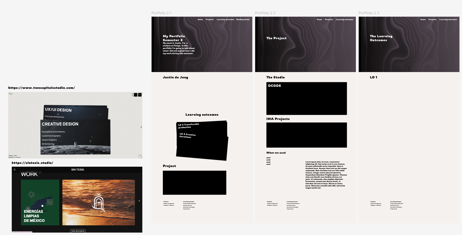 This semester, I focused on combining visual design and technical development in a user-centered way. For the DCODE studio project and my portfolio, I started with research and mood boards to define the style and logo direction. This helped me build a clear aesthetic and made the design process feel more structured and intentional.