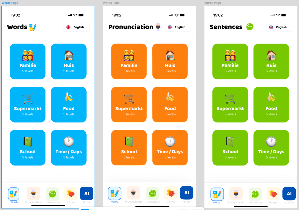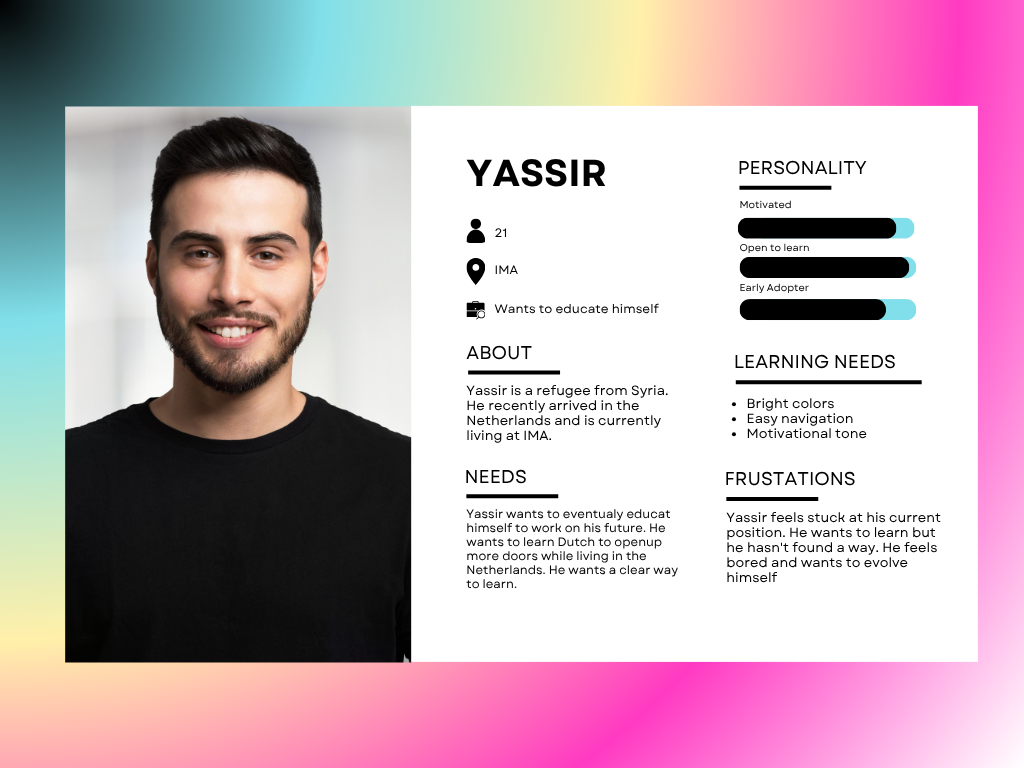 In this portfolio, I document both the redesign of my personal portfolio website and the design process of a language-learning app for refugees. I started by changing my portfolio from a playful Pokémon theme to a more professional style, so it could better represent me on platforms like LinkedIn. At the same time, I worked on an app that helps refugees learn Dutch in a simple and visual way. Both projects challenged me to think about design, usability, and how to match the right tone to the right audience.