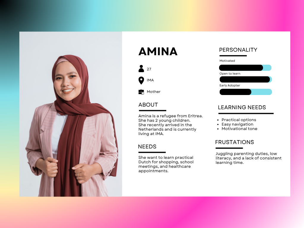 In this portfolio, I document both the redesign of my personal portfolio website and the design process of a language-learning app for refugees. I started by changing my portfolio from a playful Pokémon theme to a more professional style, so it could better represent me on platforms like LinkedIn. At the same time, I worked on an app that helps refugees learn Dutch in a simple and visual way. Both projects challenged me to think about design, usability, and how to match the right tone to the right audience.